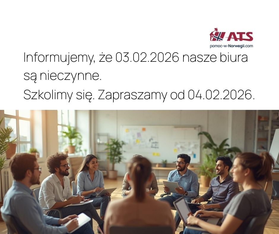 We wtorek 3 lutego odbywamy ważne szkolenie z zakresu przepisów podatkowych. Cel to uaktualnienie wiedzy i w rezultacie dostarczenie naszym klientom usług na jeszcze lepszym poziomie. Jak co roku, chcemy być na bieżąco ze wszystkimi przepisami, ulgami podatkowymi i wymaganiami urzędów w Norwegii i w Polsce. Dzięki temu będziemy mogły skutecznie Wam doradzić, gdy przyjdzie Wam się zmagać z nowym rozliczeniem rocznym.