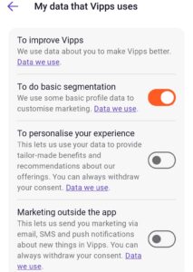 Vipps chce używać historii zakupów klientów do tworzenia spersonalizowanych reklam. Zdaniem Norweskiej Rady ds. Ochrony Konsumentów (Forbrukerrådet) jest to praktyka niezgodna z ustawą o ochronie danych osobowych. Co więcej, w opinii Rady Vipps używa manipulacji, by uzyskać na to zgodę użytkowników.