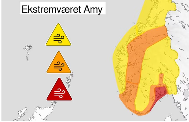 Dzisiaj rano norweski Instytut Meteorologiczny wydał zaktualizowane ostrzeżenia pogodowe. Ekstremalna wichura „Amy” ma dotrzeć do wybrzeża południowej i wschodniej Norwegii wieczorem. Drammen i okolice szykują się na największe od ćwierć wieku opady.